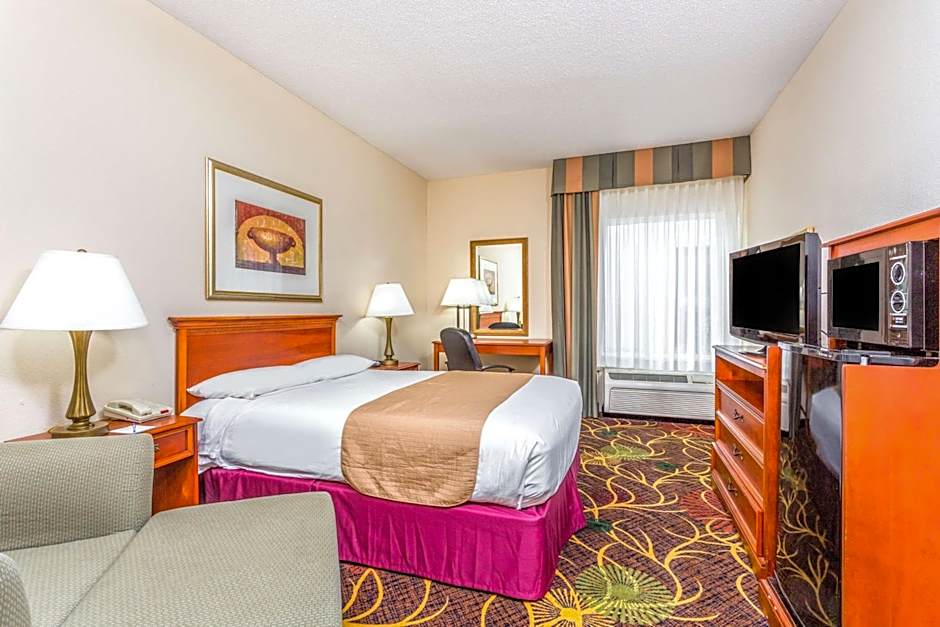 This accessible room features a flat-screen cable TV, microwave, and small refrigerator. Disability accessible features include grab bars in the bathroom.